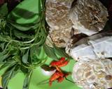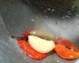 Ulek bawang putih dan cabe rawit lalu ulek juga tempe sampai hancur.